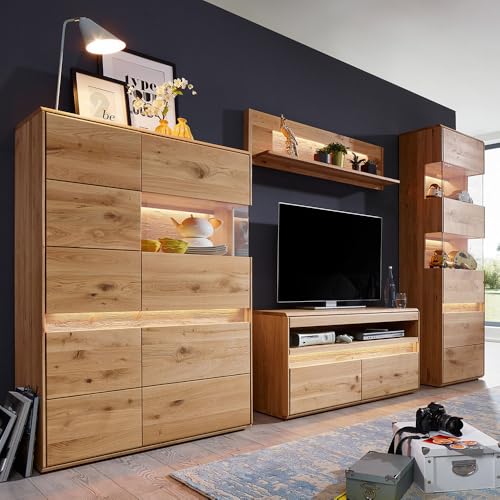Wohnwand mit Beleuchtung Teilmassiv in Wildeiche geölt