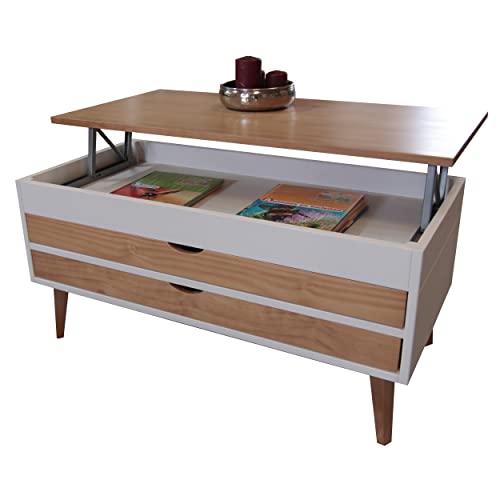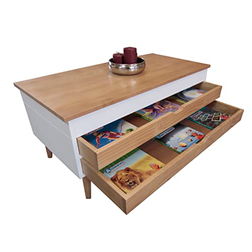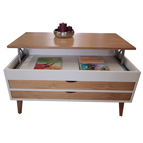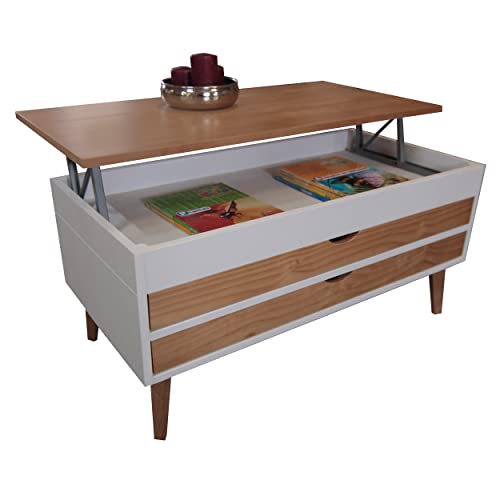 Lo Mas Casa bietet Ihnen einen idealen Couchtisch für Ihr Wohnzimmer, der mit zwei ausziehbaren Schubladen höhenverstellbar ist, um Gegenstände hineinzulegen. Er hat zwei ausziehbare Schubladen auf beiden Seiten des Tisches, die sehr nützlich sind, um Dinge in Holzfarbe aufzubewahren. Es ist ein idealer Tisch für die Dekoration Ihres Zuhauses in attraktiven Farben wie Weiß und gewachstem Holz, der Ihrem Weltraum einen Hauch von Helligkeit verleiht. Der Tisch Luzia ist aus massivem spanischen Kiefernholz gefertigt. Die Farbe auf Wasserbasis ist ganzheitlich umweltfreundlich und versucht, die Maserung des Kiefernholzes hervorzuheben und schöner zu machen. Der Tisch stammt aus eigener Herstellung, da wir Hersteller mit langjähriger Erfahrung im Möbelbau sind. Es handelt sich um ein 100 % spanisches Produkt. Zögern Sie nicht, der Tisch Luzia in den Farben Weiß und Schwarz ist ideal für Ihr Wohnzimmer. Formalisieren Sie Ihren Einkauf gegenwärtig. Sie werden es nicht bereuen