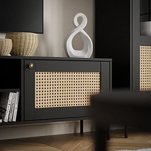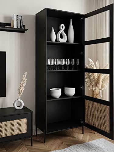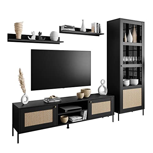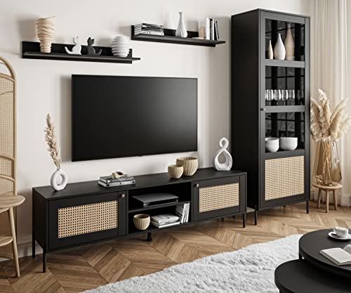 ✨Design: Haben Sie jemals etwas anziehend Wunderschönes gesehen? Minimalistische schwarze Schränke mit einer äußerst gelungenen Nachbildung des berühmten Wiener Rohrgeflechts an den Fronten verleihen Ihrem Wohnzimmer einen Hauch von Luxus. Abgestimmt wird das Ganze durch stilvolle Metallveredelungen, Metallknöpfe und Letzter Schrei Metallbeine.