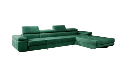 Luxusbetten24 Designer Sofa Calvera Maxi mit Stauraum und Schlaffunktion | Bezug: Samt | Farbe: Grün | Stellvariante: Rechts