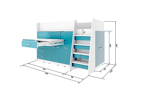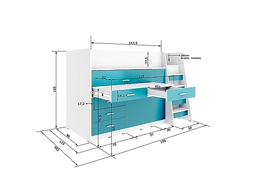 FUNKTIONAL – Das JSM-1 Möbelset ist ein praktisches und funktionales Möbelstück, das in einem Kinder- oder Jugendzimmer verwendet werden kann. Standard-Etagenbett zu hoch für das Zimmer? Unser Modell JSM-1 mit einer Höhe von 129 cm wird hier perfekt sein.