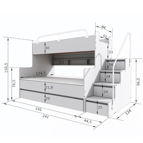SIE ENTSCHEIDEN – Dank der verwendeten technischen Lösungen können Sie bei der Montage die Reihenfolge des JSM-3 Entscheidung, ob die Treppe links oder rechts vom Bett platziert werden soll.