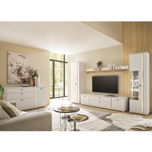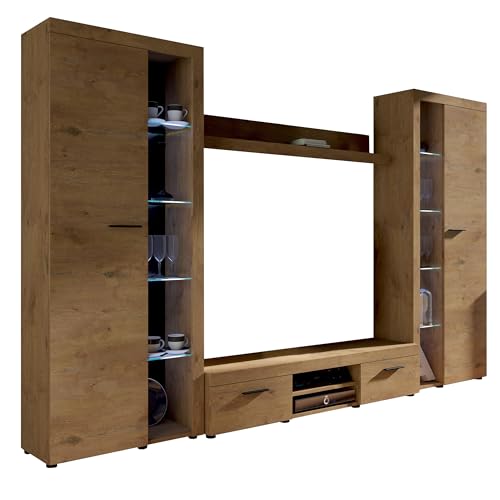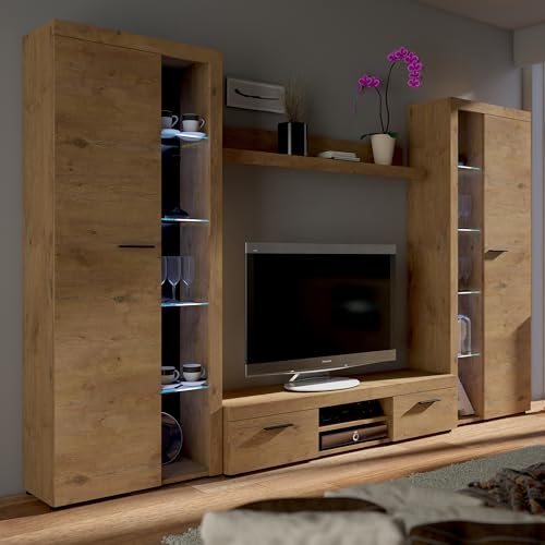 - Hochwertige Materialien und solide Vollziehung: Gefertigt aus robuster Laminierte Spanplatte, überzeugt die Wohnwand durch Langlebigkeit, Pflegeleichtigkeit und hohe Widerstandsfähigkeit gegen Kratzer. Perfekt geeignet für den täglichen Gebrauch.
