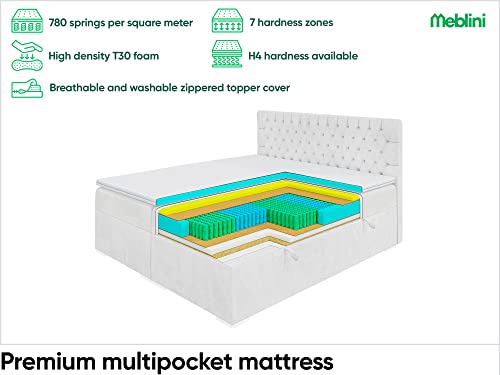 ✅ 【KOMFORTABLE MATRATZE UND TOPPER】 – Das Polsterbett hat eine eingebaute mehrschichtige Premium Federkernmatratze (780 Federn/m2) H4 Härte mit 7 Härtezonen, die sich der Körperform anpasst, um einen angenehmen Schlaf zu gewährleisten und die Wirbelsäule zu entlasten. Die Matratze ist nicht alles, zum Set gehört vulgo ein 4 cm hoher Schaumstoff-Topper, der Ihnen das Gefühlsausbruch gibt, auf einer Wolke zu schlafen