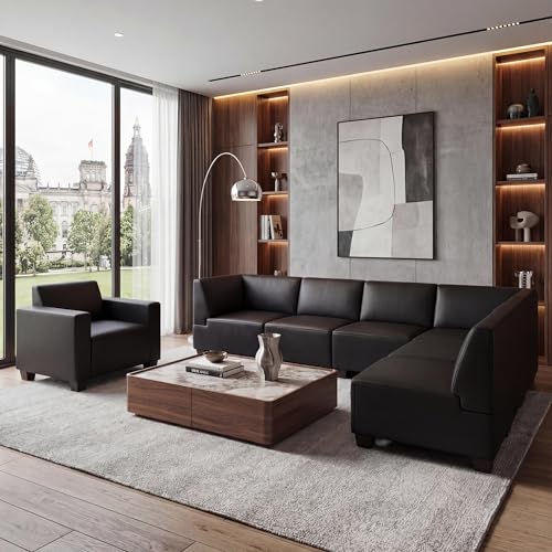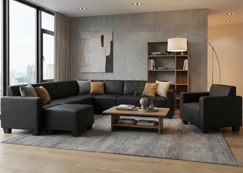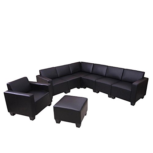 Mendler Modular Sofa-System Couch-Garnitur Lyon 6-2, Kunstleder – schwarz