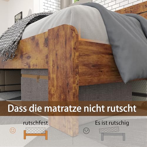 Das Kopfteil dieses Bettes hat ein kontrastreiches Design in brauner Farbe. Diese Kombination von Farben und Materialien sorgt sondern eine harmonische und attraktive Optik.