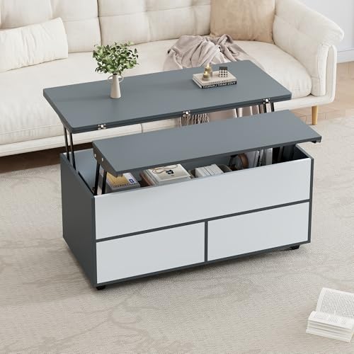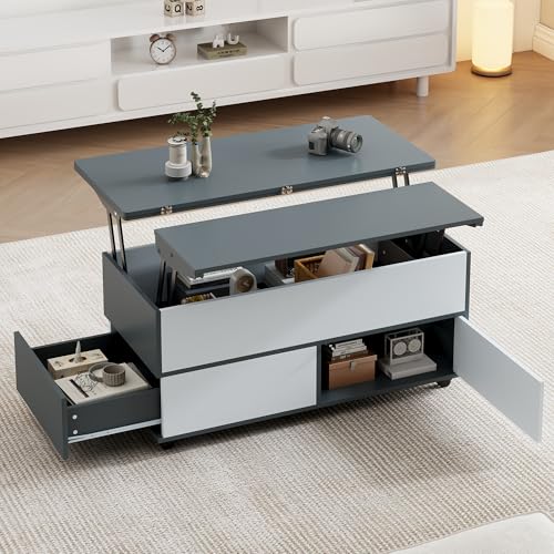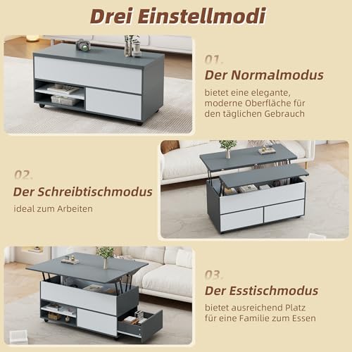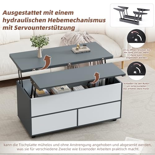 【Vielseitige Fotografie dank hydraulischer Hebemechanik】Zwei verriegelt anhebbare Tischplatten verwandeln den Couchtisch im Handumdrehen in einen Esstisch oder Arbeitstisch. Ideal für moderne Wohnräume mit flexibler Nutzung – vom Teetrinken bis zum Homeoffice.