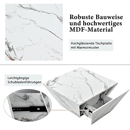 【Schublade Speicherkapazität】Mit 2 geräumigen Schubladen allesamt hochwertigem Marmorfurnier bietet Ihnen dieses stilvolle Couchtisch nicht Gewiss ausreichend Platz, um Ihren täglichen Speicherbedarf mühelos zu schließen, sondern verleiht aka Ihrem Weltall einen Hauch von Luxus und Eleganz.
