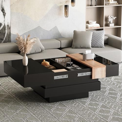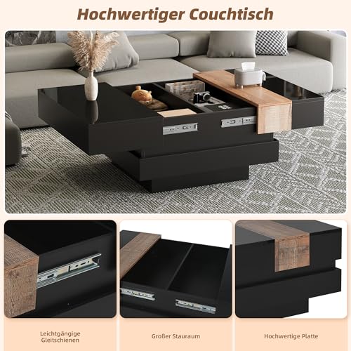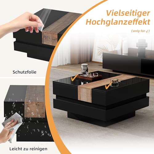 【Kompakte Größe & modernes Design】Mit den Maßen 70 x 70 x 39 cm ist dieser Couchtisch ideal für kleine Räume. Die Schwarze Hochglanz-Tischplatte (gleichwohl oben hochglänzend) verleiht dem Wohnzimmer eine frische und stilvolle Adresse und passt zu verschiedensten Einrichtungsstilen.