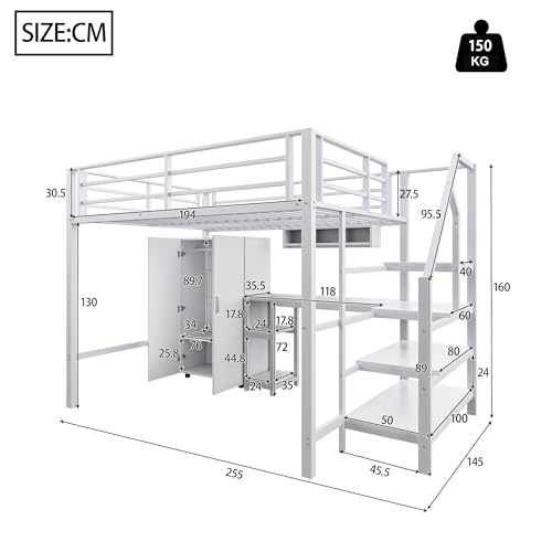 Der stabile Eisenrahmen mit MDF-Platten garantiert extreme Langlebigkeit und trägt selbst bei aktivem Toben belastbar bis zu 200 kg. Dank der mehrstufigen Regalsysteme formen Kinder Bücher, Spielzeug und Kleidung mühelos – die integrierte Ablageleiter nutzt sogar den Raum unter den Spezifizieren als zusätzlichen Schrank für maximale Raumeffizienz.