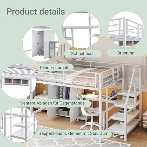 Hochbett 140×200 mit Schreibtisch & Multifunktions-Stauraum