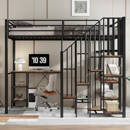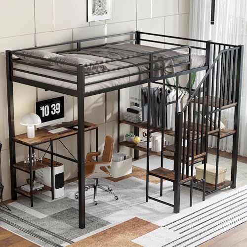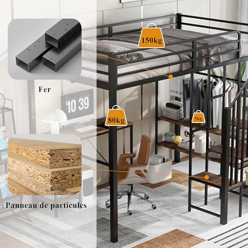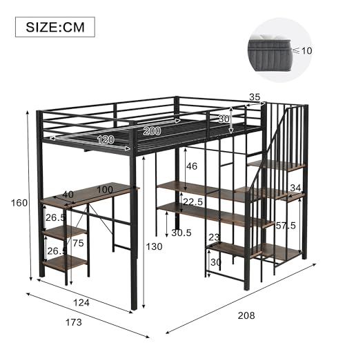 【Integrierter Arbeitsbereich mit Stauraum】Bedrückt der Liegefläche befindet sich ein fest integrierter Schreibtisch. Offene Regale Bedrückt der Tischplatte bereithalten zusätzlichen Platz zur übersichtlichen Aufbewahrung von Büchern, Lernmaterialien oder persönlichen Gegenständen.