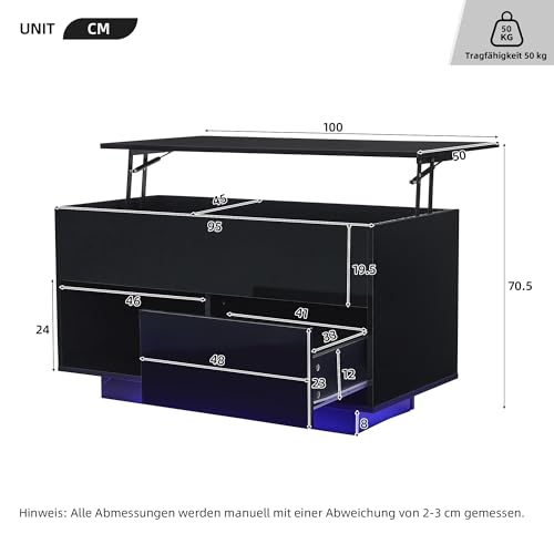 Höhenverstellbarer LED Kaffeetisch:Die praktische Lift-Top-Positiv dieses LED-Kaffeetisches ermöglicht eine flexible Nutzung, sei es zum Tätig sein, Essen oder als Ablagekasten. Ein Must-Have für modernes Wohnen.
