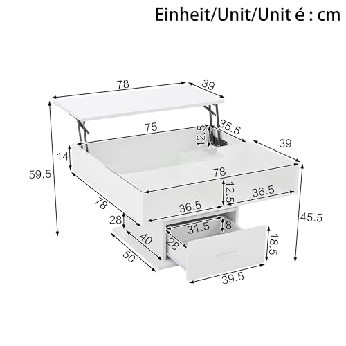 - Gesamtabmessungen (cm): 78 L x 78 B x 45,5 / 59,5 H