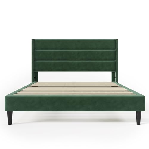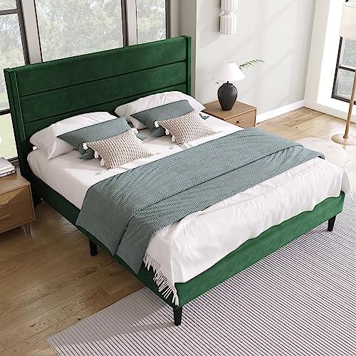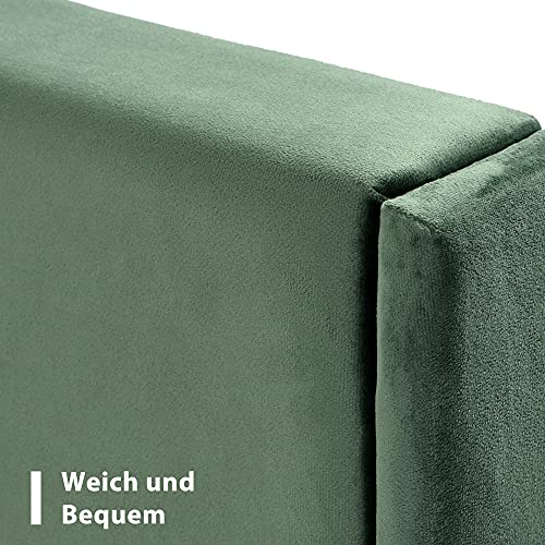 🛌🛌🛌〖Farbe weiterhin Größe〗Dunkelgrün Samt Polsterbett, Gesamtabmessung: 210 x146 x 111 cm, anpassende Matratze: 140 x 200 cm (Matratze nicht enthalten), Tragfähigkeit: 181 kg.