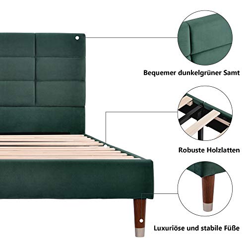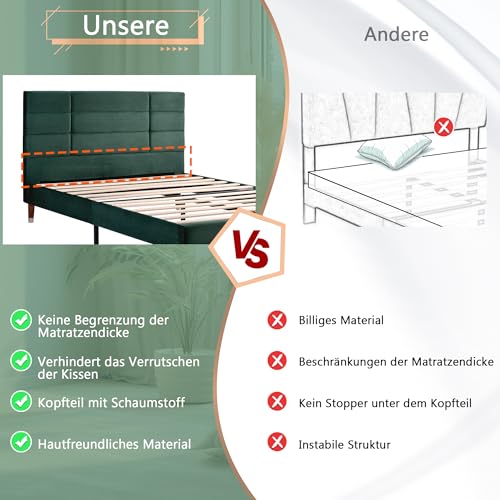 🛌🛌🛌〖Bett mit elegantem Design〗Morden and Elegant Polsterbett mit Bettfüßen und Kopfteil gepolstert. Das Bettgestell ist im neutralen gehalten, danach es sich problemlos in jedes Wohnungstyle einfügen kann, für Erwachsene, sondern alias für Jugendliche entsprechend.