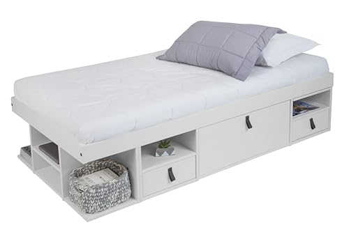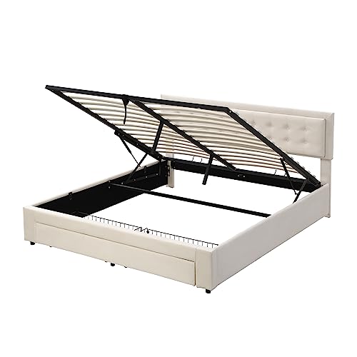 Leistungsstarke Aufbewahrungsfunktion: Das Bett hat eine leistungsstarke Lagerungsfunktion, die in Kombination mit hydraulischen Stangen und Drahtgitterschubladen ist. Und es ist täglich leicht zu reinigen, bietet Stauraum zugunsten Ihre Gegenstände und hält Ihr Zimmer sauber und komfortabel.