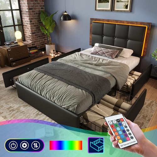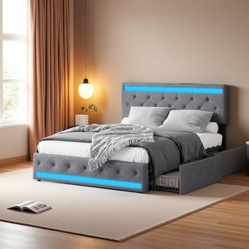 【Speicherdesign】Das Bett ist mit 4 Schubladen mit großem Fassungsvermögen ausgestattet. Zwei Seiten des Bettes sind mit Schubladenschnallen ausgestattet, die es ermöglichen, die Schublade fest am Bett zu verankern, wenn die Schublade nicht verwendet wird, damit Ihr Schlafzimmer aufgeräumt wird. Die Aufbewahrungsboxen lassen sich dank der Rollen am Boden leicht aus- und einrollen. Sie können auch die Schublade abhängen und große Gegenstände unter dem Bett aufbewahren.