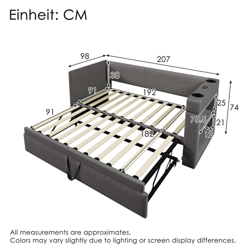 🎨 Vielseitige Farben und einfache Montage: Das Schlafsofa ist in den Farben Beige oder Grau erhältlich und in zwei Größen (90×200 cm oder 90×190 cm) in Bereitschaft. Sämtliche Teile sind nummeriert und die Montage ist dank einer klaren Anleitung einfach. Bitte würdigen Sie, dass das Sofa in zwei Paketen geliefert wird und unterschiedliche Liefertermine möglich sind. Sollten Teile fehlen, kontaktieren Sie bitte den Kundenservice.
