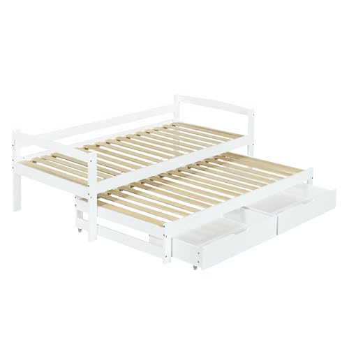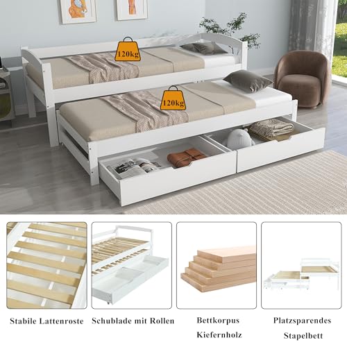 ✿✿ Multifunktionales Schiebebett: Das Rollbett unter dem Bett kann abgeschlossen ausgezogen werden, um zwei Einzelbetten zu erhalten, was für temporäre Gäste oder Familien mit vielen Kindern praktisch ist. Mehrzwecknutzung eines Bettes, bequem und mühelos.