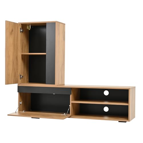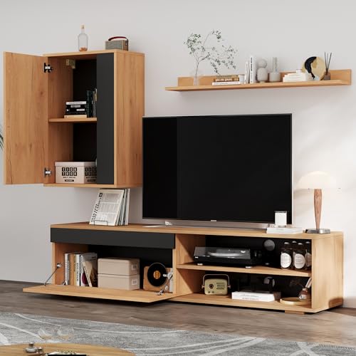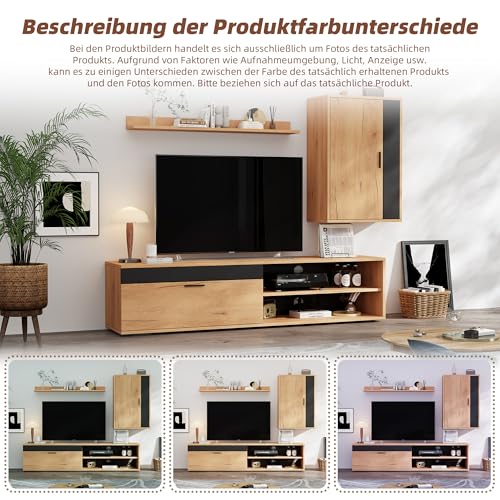 【Vielseitige Aufbewahrung & Präsentation】Mit Schrank, halboffenen Fächern, verstellbarer Abteil und Wandregal bietet das Set genügend Platz für Multimedia-Geräte, Bücher, Dekorationen, Bilderrahmen oder Pflanzen. Die Gesamtheit bleibt gepflegt und griffbereit.