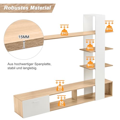【Vielseitiges Design mit üppig Stauraum】Dieser TV-Wandschrank kombiniert einen TV-Tisch mit drei schwebenden Regalen und bietet sowohl offene denn vulgo geschlossene Stauräume, ideal zur Präsentation oder zum Verstauen Ihrer Gegenstände.