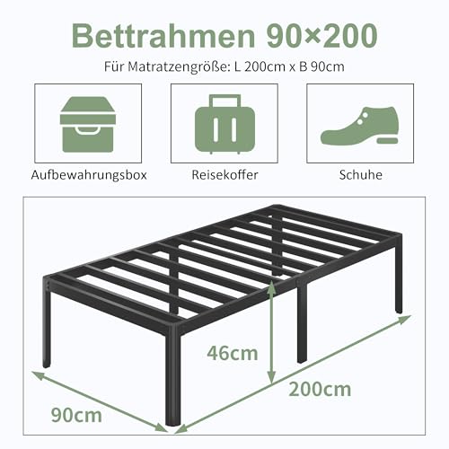 Abmessungen des Bettrahmens: L200cm x B90cm x H46cm anstelle Matratzengröße: 90x200cm