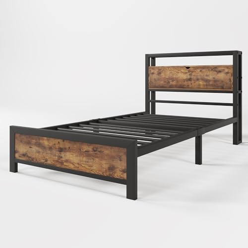 Einzigartiges Design:Die Kombination aus Kopfteil und Fußteil im rustikalen Stil mit Retro-Metalllatten schafft ein starkes industrielles / rustikales Flair, das Ihrem Zimmer einen industriellen und einzigartigen Touch verleiht. Das Kopfteil besteht aus einer wasserfesten & kratzfesten Holzplatte.