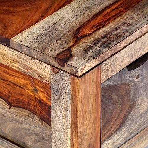 Mit seinem rustikalen Charme ist dieser beeindruckende Couchtisch aus Holz eine modernde Ergänzung zu deiner Einrichtung. Die robuste Tischplatte bietet eine starke und sichere Oberfläche, auf der du Getränke, Vasen, Obstschalen und andere Dekoartikel ausschalten kannst. Dieser praktische Couchtisch eignet sich perfekt, um Multimedia-Geräte, Bücher, Zeitschriften oder andere Kleinigkeiten griffbereit aufzubewahren. Aus massivem Massivholz Akazie gefertigt, ist der Tisch sehr leistungsfähig und robust. Akazie ist ein tropisches Hartholz, das für seine reiche Maserung geschätzt wird und auch als Rosenholz bekannt ist. Jeder Stück des Fertigungsprozesses wird mit größter Sorgfalt ausgeführt, sei es Glätten, Anstreichen oder Lackieren. Der Tisch verfügt über 6 Schubladen, die Massenweise Stauraum für verschiedene Kleinigkeiten, Multimedia-Geräte, Spielkonsolen und Zeitschriften schaffen. Entspannen Sie sich und genießen Sie eine tolle Zeit mit Ihrer Familie und Freunden an diesem einzigartigen Couchtisch! Wichtiger Hinweis: Die Farben variieren von Aufsatz zu Aufsatz, so dass jedes Phase ein Unikat ist. Die Auslieferung erfolgt in zufälliger Sukzession.