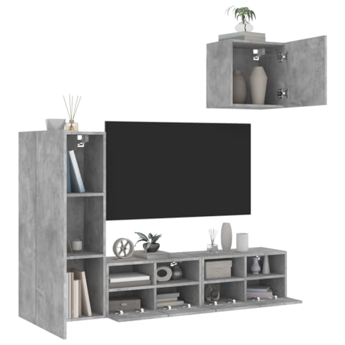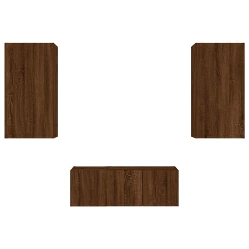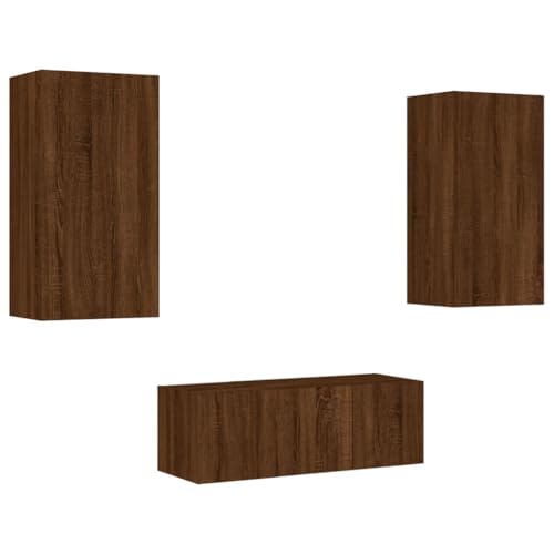 Mimdixy Fernseher Schrank, 4-TLG. Wohnwand mit LED-Beleuchtung Braun Eiche Holzwerkstoff TV ünitesi für Wohnzimmer, Büro Schlafzimmer