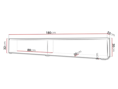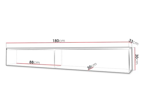 – Modell 180: Breite: 180 cm, Höhe: 30 cm, Schlund: 33 cm