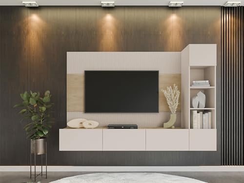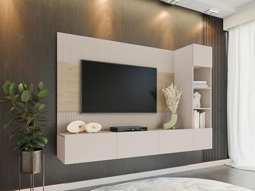 Wohnwand mit Wandpaneele und TV-Lowboard Deromi