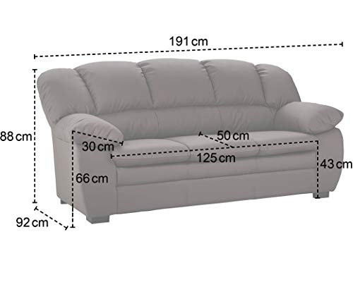 Rückenecht weiterhin nackt im Sphäre stellbar / Maße: 191 x 88 x 92 cm (BxHxT), Sitzhöhe: 43 cm, Sitztiefe: 50 cm, Sitzbreite: 125 cm, Füße: 4,5 cm