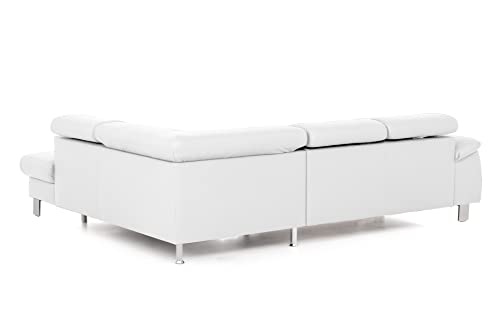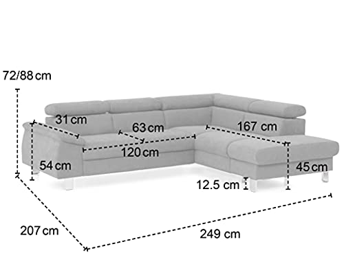 Lieferumfang: Mivano Polsterecke Micky, davorstehend: 2er-Sofa anderenfalls, Ottomane rechts / inkl. 3x Kopfteilfunktion, Lager (ursprünglich) + Stauraum / Metallfüße verchromt