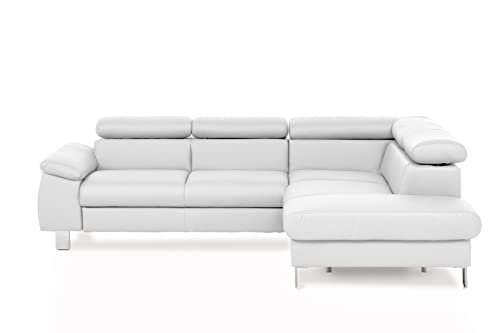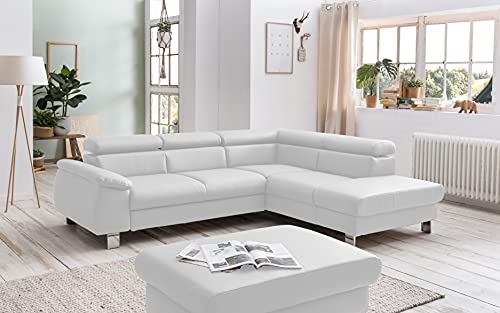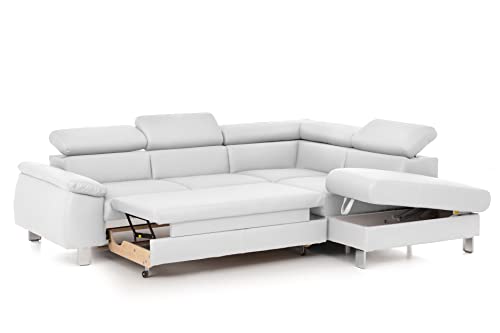 Moderne Eckcouch fürs Wohnzimmer, unter Einsatz von Ottomane, Bettfunktion (ursprünglich), kleinem Bettkasten außerdem drei verstellbaren Kopfstützen (7-abgestuft)
