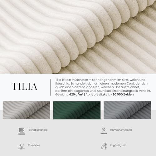 Das Boxspringbett Cord besteht alle weichem TILIA-Cordstoff. Es ist abriebfest, langlebig außerdem glücklich in der Haptik. Das Material ist frei von schädlichen Chemikalien.