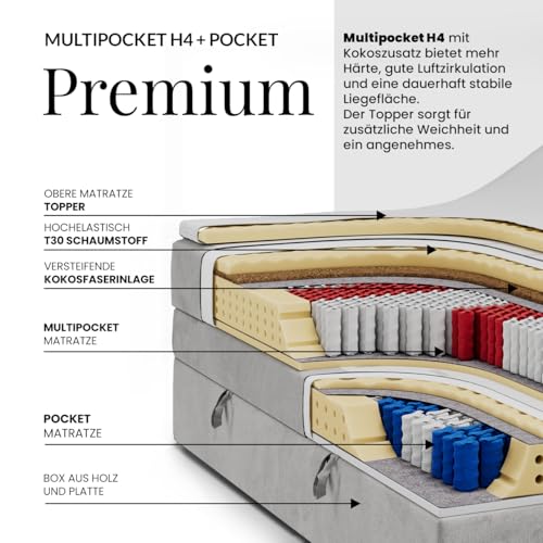 Doppelbett: 7-Zonen-Taschenfederkern-Matratzen – zwei Härtegrade: H3 oder H4 – zur Auswahl. Sie katalysieren die Wirbelsäule außerdem sorgen jeden Tag sondern angenehmen Schlaf.