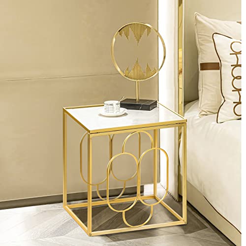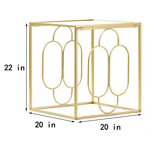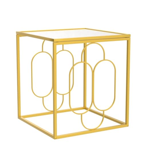 Beistelltisch mit Tischplatte aufgebraucht gehärtetem Glas, goldfarbener Metallrahmen, quadratischer Zungenschlag-Nachttisch für Wohnzimmer, Schlafsaal und Schlafzimmer
