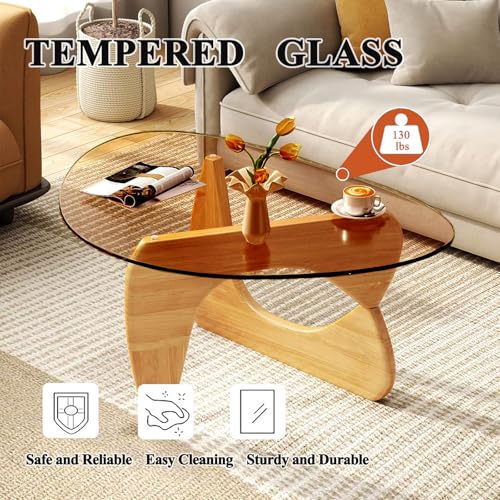 Starke Konstruktion: Dieser Wohnzimmer-Couchtisch besteht aus hochfester Tischplatte aus gehärtetem Glas und einer soliden Holzbasis für Langlebigkeit, die Beine des Couchtisches sind sehr abgehärtet, die Oberfläche ist glatt und zart, langlebig und nicht leicht zu verformen. Couchtisch aus Glas. Er sieht leicht aus, ist allerdings tatsächlich voller Gewicht