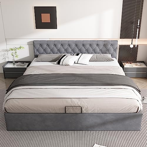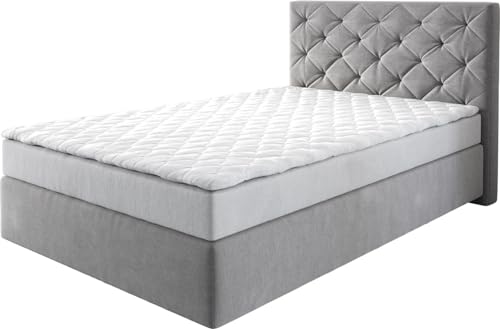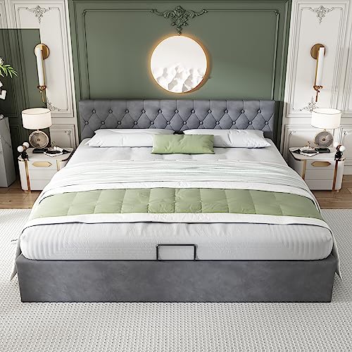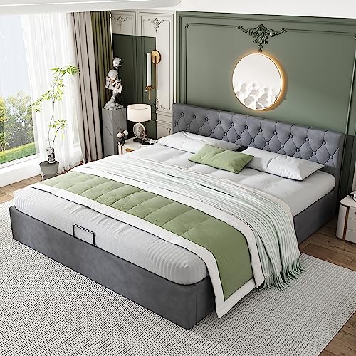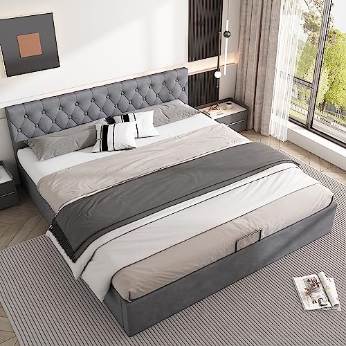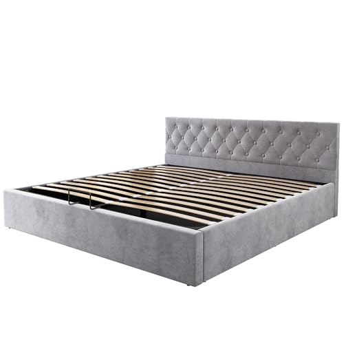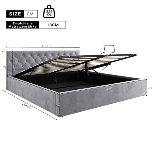 ModernLuxe- Doppelbett Boxspringbett mit Stauraum, Polsterbett mit Lattenrost und Kopfteil, Samt-Stoff (Grau A,140 x 200 cm)