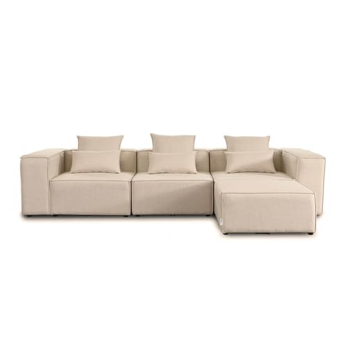 🧶Weiche Stoffe – Die Ecksofas sind mit weichen Stoffen von höchster Qualität gepolstert, die bei jeder Berührung ein Vergnügen garantieren. Die Stoffe sind nicht zwar hautfreundlich, sondern auch atmungsaktiv, um das ganze Jahr über thermischen Komfort zu gewährleisten. Sie sind resistent gegen Ausfransen und pflegeleicht und behalten ihre Frische und Eleganz über Jahre hinweg. Sie sind stilvoll und langlebig und bringen Wärme und Luxus in jedes Interieur