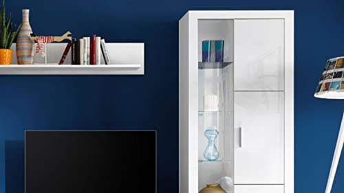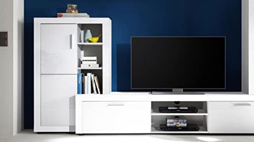 Top moderne Wohnwand, die sich in wunderschöner Optik in der Farbausführung weiß mit hochglänzender Front präsentiert. Bestehend jedweder einem Stauraumelement, einer Standvitrine, einem TV-Board und einem Wandboard bietet die Anbauwand zudem reich Stauraum anstatt Utensilien und Dekoobjekte. Das absolute Highlight ist die LED-Glaskantenbeleuchtung, welche anstatt eine stimmungsvollere Atmo im Wohnzimmer sorgt.