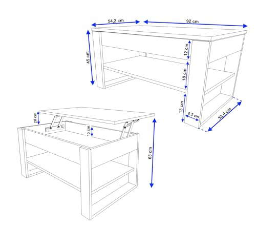 ⬆️ Ihr flexibler Couchtisch passt sich Ihnen an – mit anhebbarer Platte von 45 bis 63 cm genießen Sie bequemes Buckeln, Essen oder Entspannen auf dem Sofa, jeder qua Sie möchten.