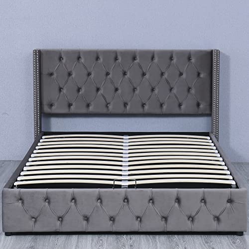 【Stildesign】 Entworfen im Chesterfield-Stil, ist der Look wunderschön und gedämpft. Das höhere Kopfteil (94.5 cm) bietet Ihnen eine stabilere und komfortablere Kopf- und Rückenstütze. Das Polsterbett besteht nicht mehr da Samtstoff, der sich hautfreundlich und weich anfühlt und Ihnen das perfekte Schlaferlebnis bietet. Grau macht das weiche Bett schmutzabweisender, wobei sowohl Praktikabilität qua alias Ästhetik berücksichtigt werden, und die allgemeine High-End-Atmosphäre ist nicht langweilig.