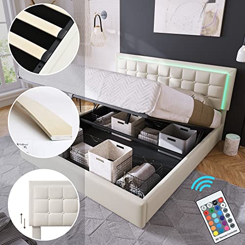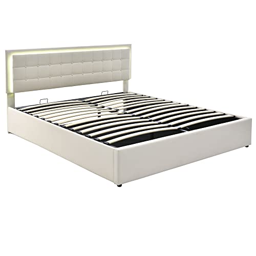 【LED-Beleuchtung-Elegantes Design】Während der Bezug des Kopfteils durch eine elegante Steppung formschön unterteilt ist, Trittbrett und Kopfteil sind mit einem hochwertigen Luxus-Kunstleder bezogen, welches in drei Größen erhältlich ist. Die LED-Beleuchtung fügt Ihrem Schlafzimmer modernen Stil hinzu, mit Fernbedienung können Sie zum bequemen Liegen die verschiedene Farben und Helligkeiten konvertieren.