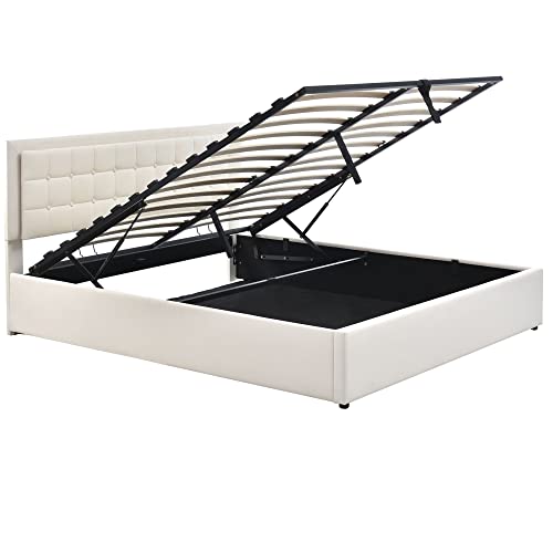【Hydraulikstange-Toller Stauraum】 Im Bettkasten haben Sie viel Platz, um Kleidung, Bettwäsche und andere Habseligkeiten vor Staub geschützt unterzubringen. Die Oxford-Stoff helfen dabei, Schimmel und Stockflecken vorzubeugen. Wir empfehlen wohl, den Bettkasten regelmäßig auslüften zu lassen. **Bitte legen Sie die Matratze auf das Bett, bevor Sie den Hydraulikhebel abschmecken.