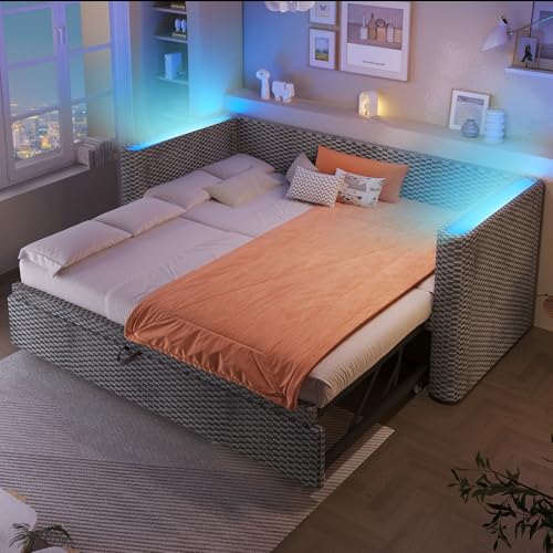 Mrwoo Tagesbett Schlafsofa 90 × 200 cm /180 × 200 cm, multifunktionales Ausziehbett mit Lattenrost, Daybett, Samt, Grau (ohne Matratze)