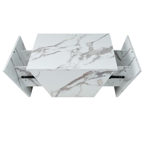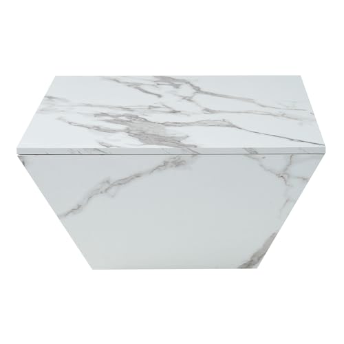 MURUL Moderner Trommel Couchtisch, Trapezförmiger weißer Marmorfurnier Couchtisch, Wohnzimmertisch 70×70×37cm