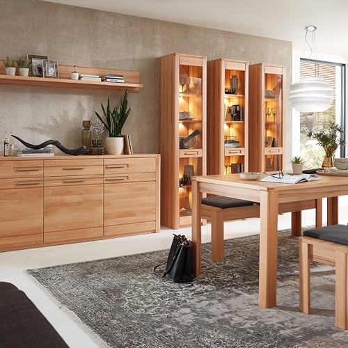 NATURE ONE Vitrine in Kernbuche teil-massiv FSC-zertifiziert – Moderner Vitrinenschrank mit LED-Beleuchtung und viel Stauraum – 43 x 203 x 40 cm (B/H/T)