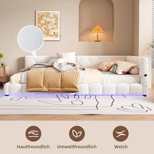 【📱Umgebungslicht Design】Das Daybett ist mit APP-einstellbaren Farbe LED-Umgebungslicht um das Bett, 16 Farben, können Sie die Lichtfarbe nach Ihren Wünschen und Stimmung, eine romantische und Stimmung für das Schlafzimmer.